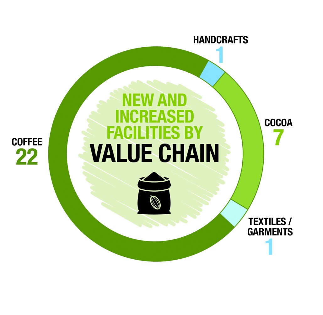 While seeking diversification, coffee continued to account for the largest share of new approvals, with seven facilities worth around £2.4m. Additionally, the cocoa sector was supported with two facilities worth around £500k in Côte d'Ivoire and Uganda. One credit facility of £50k was extended to a UK-based textiles and garments enterprise.